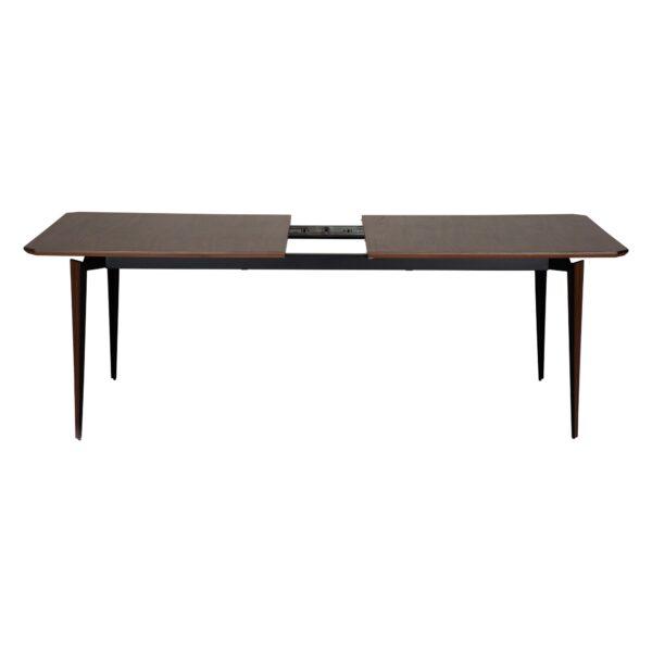 Blagovaonski stol Edge opravdava svoje ime odvažnim dizajnom s daškomom elegancije. Noge imaju prekrasan detalj furnira i trokutasti oblik što stolu daje lagan i prozračan izgled. Ovaj stol dolazi s 2 produžne ploče koje produžuju stol za 1 m i praktično se spremaju ispod površine stola kada se ne koriste.