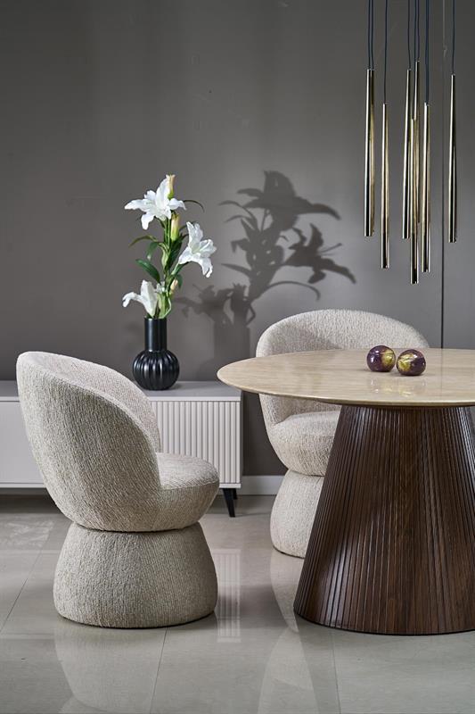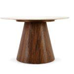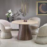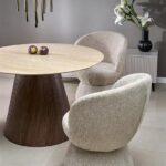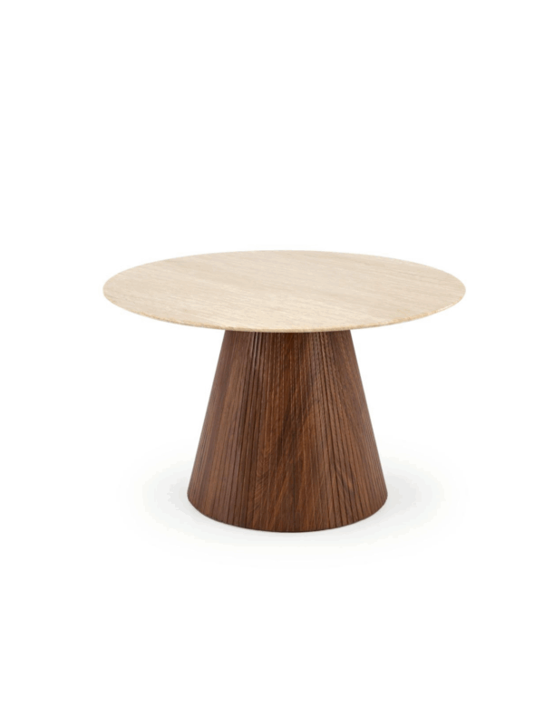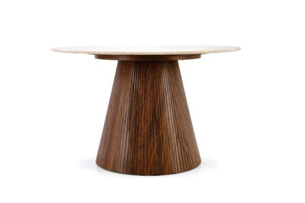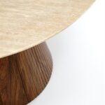 Blagovaonski stol Engel dodat će dašak suzdržanog luksuza vašoj blagovaonici. S lakiranom mramornom pločom koja podsjeća na travertin i bazom od oraha, ovaj stol stvorit će savršeni završni dodir u svakom domu ili projektu uređenja interijera.