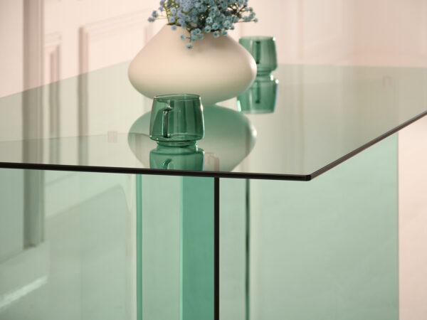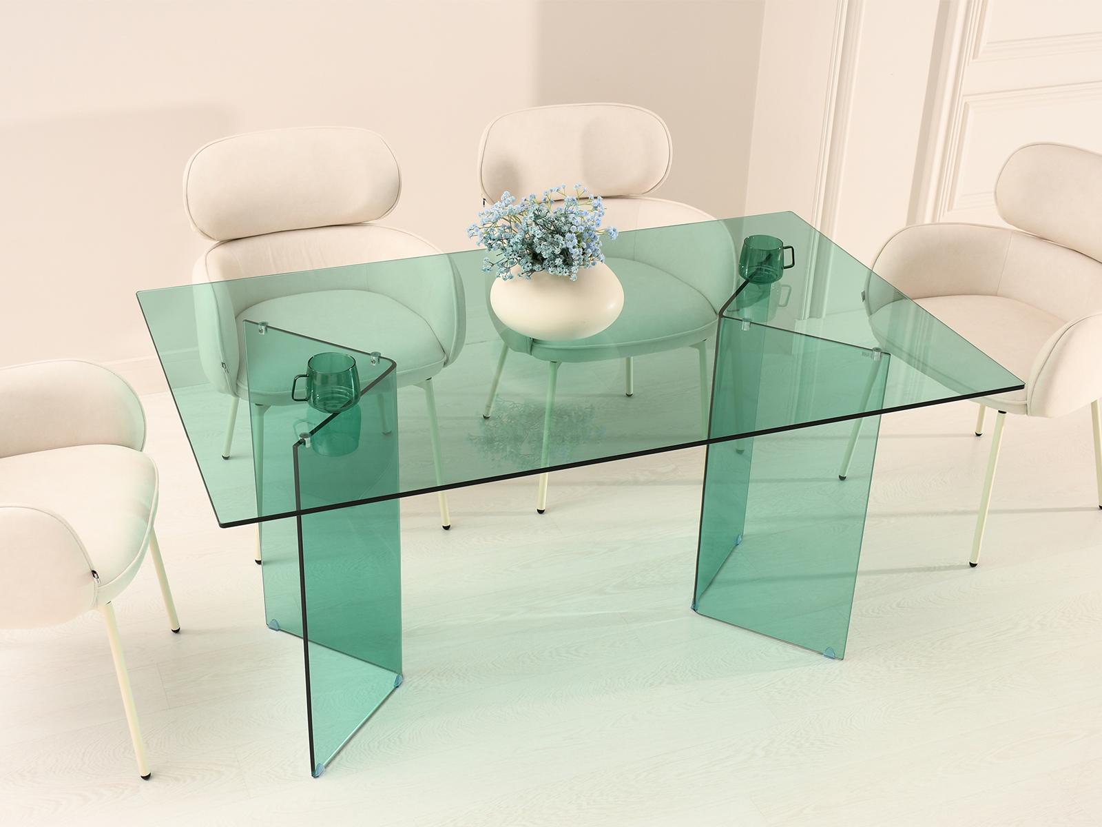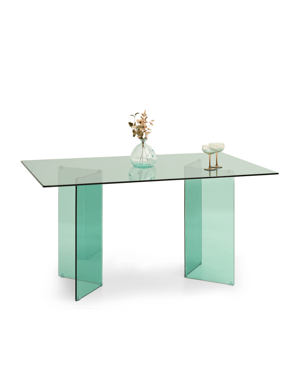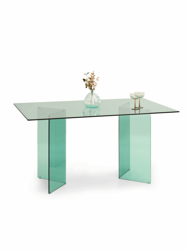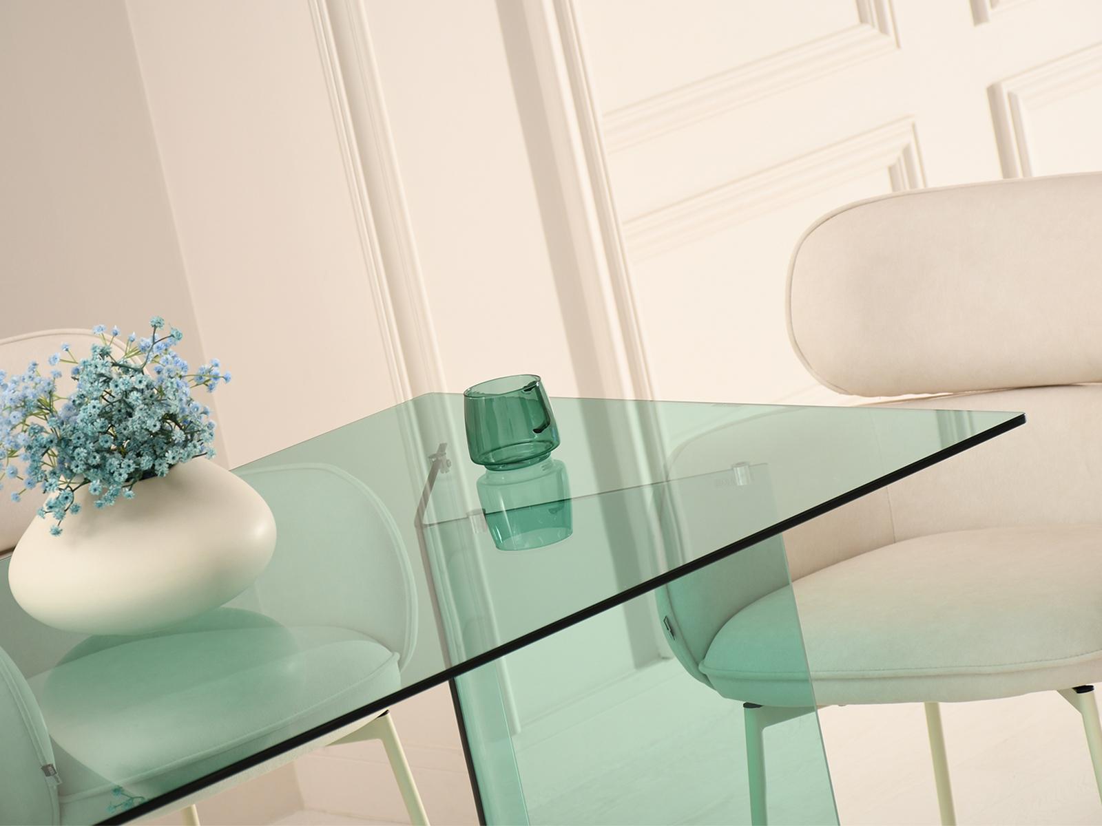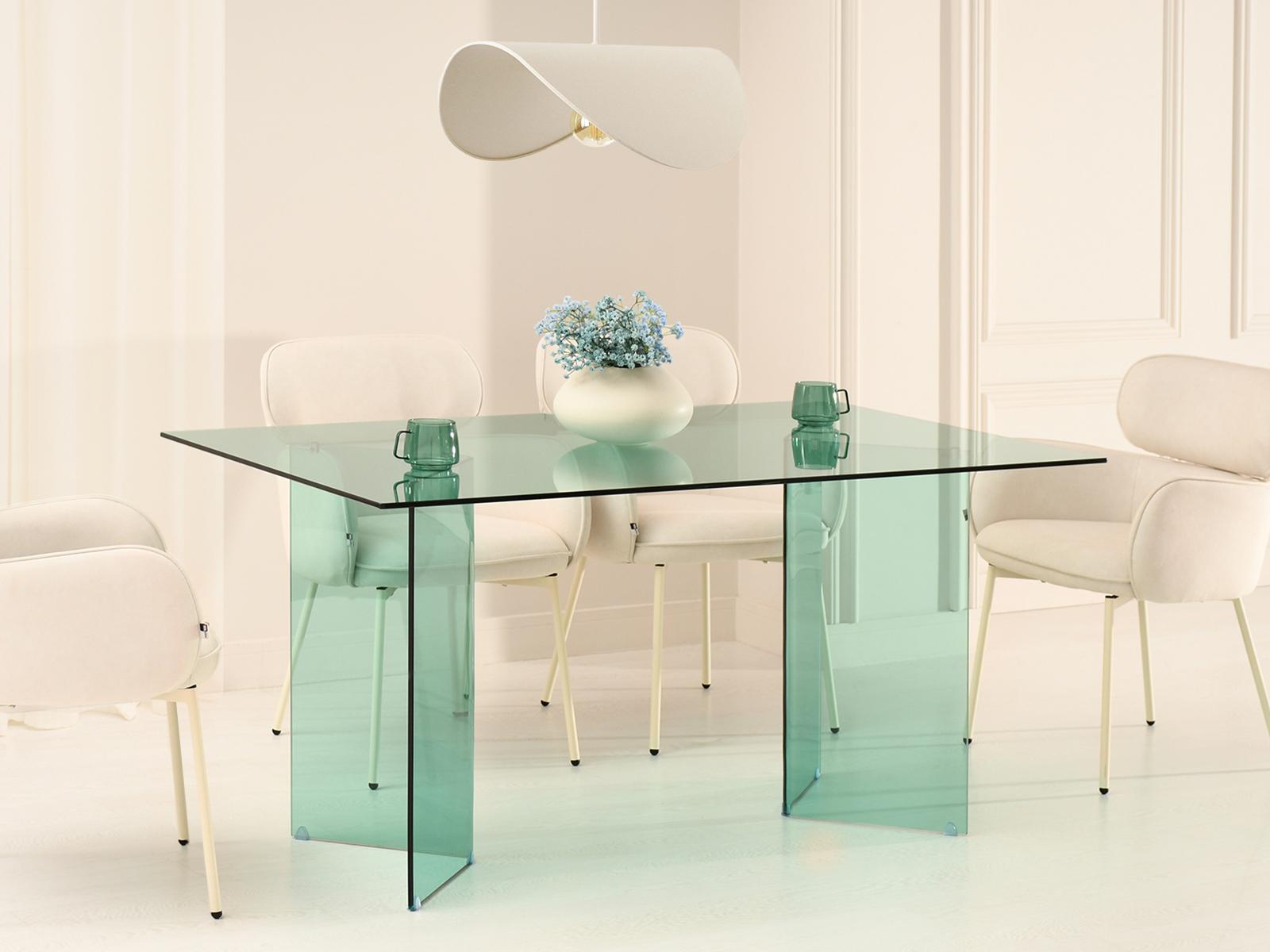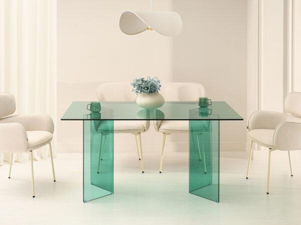 Blagovaonski stol Etiel savršeno je rješenje za modernu blagovaonicu ili elegantan dnevni boravak gdje su elegancija i minimalizam ključni. Njegova staklena ploča u kombinaciji s poluprozirnim nogama daju prostoru lagan i profinjen karakter.