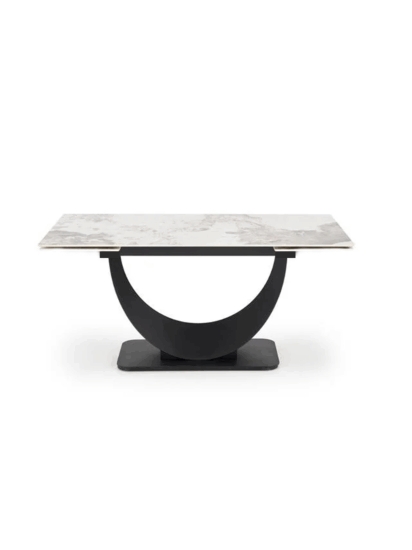 Fiksni blagovaonski stol Ferni II sastoji se od sinterirane kamene ploče koja svakom prostoru daje dašak bezvremenskog luksuza. Elegantne crne noge izrađene u prepoznatljivom “U” obliku ne samo da pružaju čvrstu potporu, već također doprinose suvremenoj estetici stola.