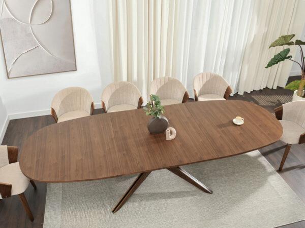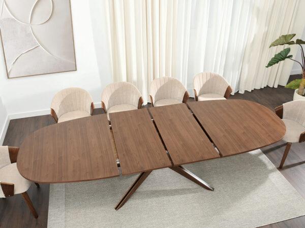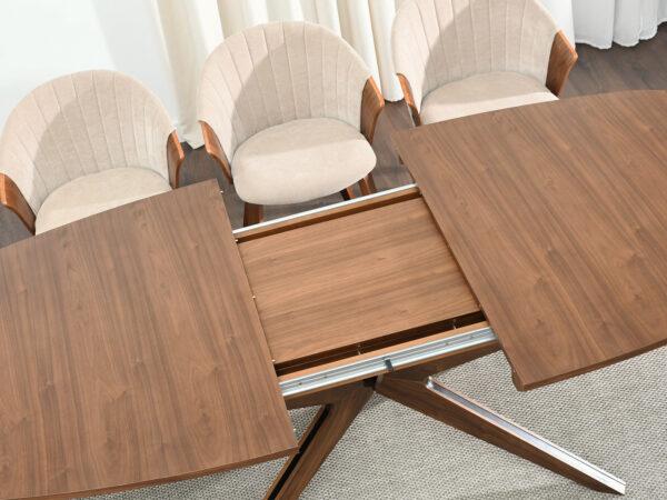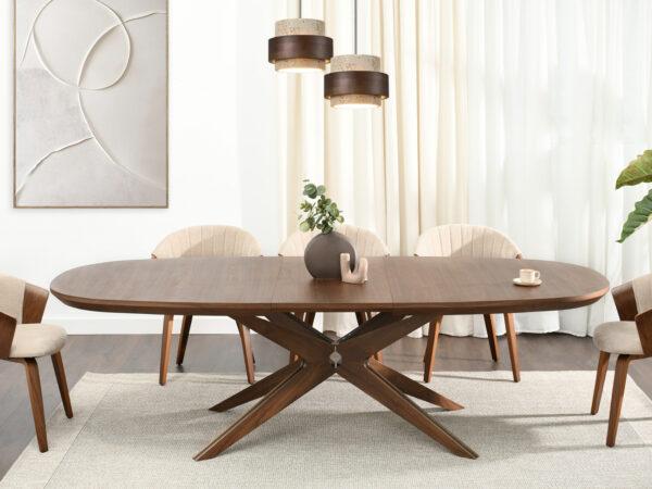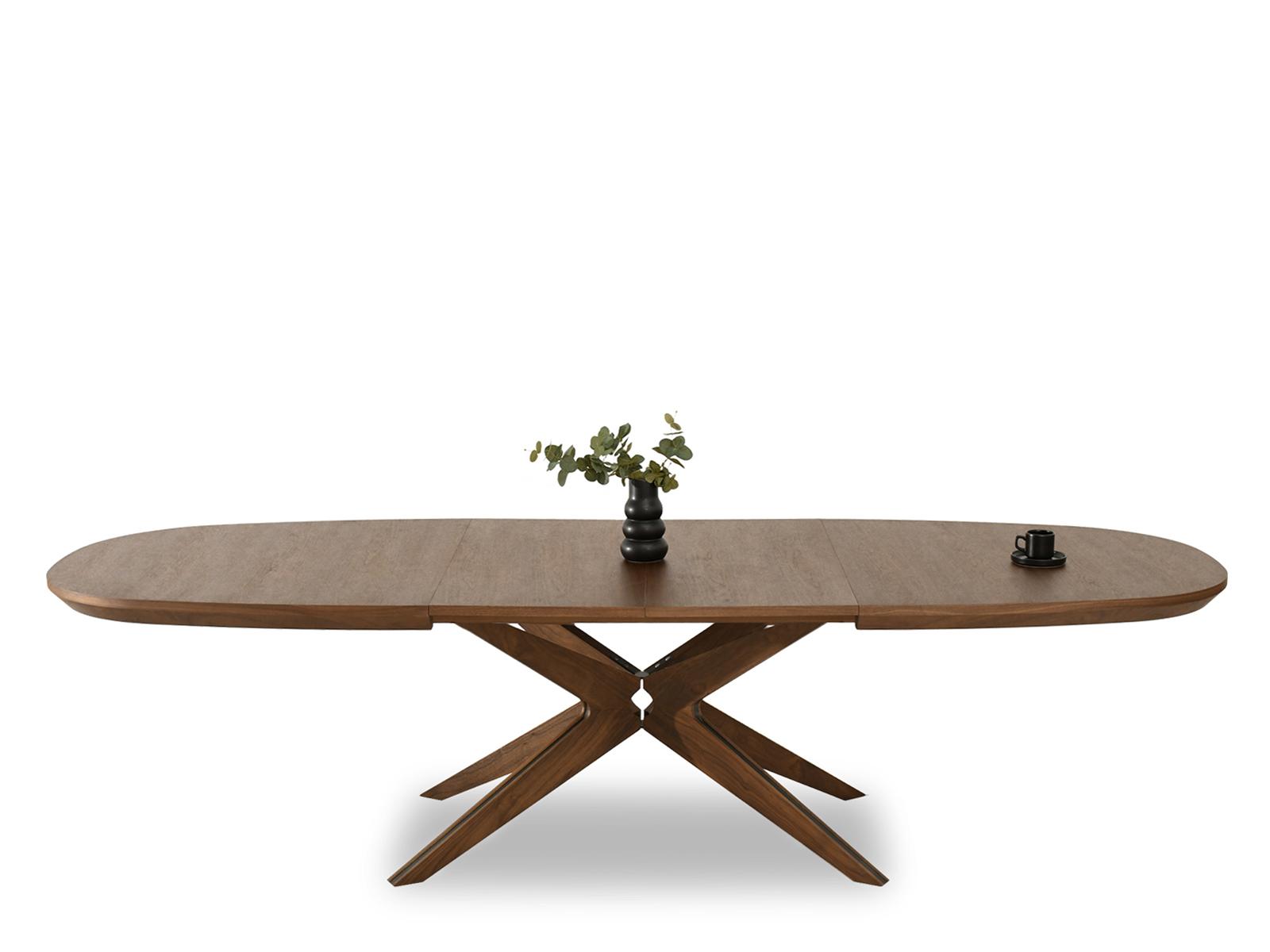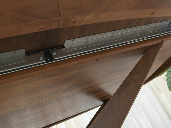 Zahvaljujući naprednom mehanizmu, stol se može razvući na impresivnu duljinu od 300 cm, a dva umetka – svaki od 50 cm, pohranjena ispod ploče stola, omogućuju korištenje ploče stola u tri širine: 2, 2,5 i 3 metra.