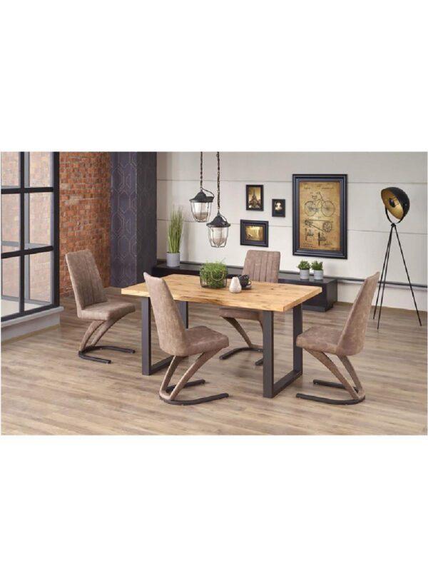 Blagovaonski stol crnih metalnih nogu i drvene ploče boje hrasta savršeno će se uklopiti ukoliko volite jednostavniji stil.