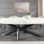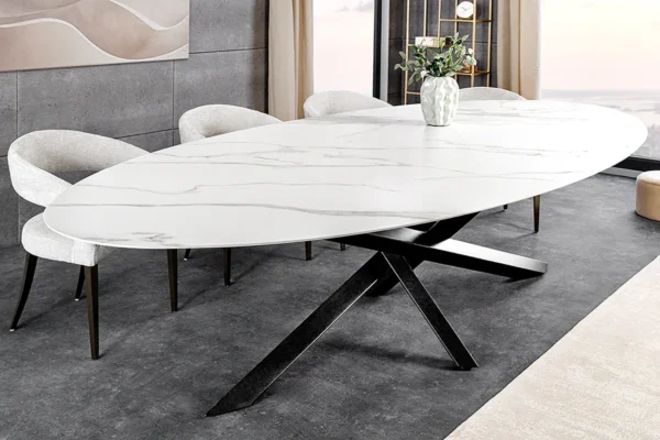 Blagovaonski stol Kaiser vaš je novi izbor za elegantna okupljanja, kombinirajući eleganciju mramornog efekta s čvrstim crnim metalnim okvirom. Prostran i izrađen za dugotrajnost, ovaj stol savršen je za sve, od velikih obiteljskih gozbi do ugodnih kasnonoćnih razgovora.