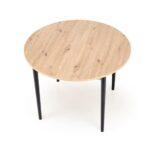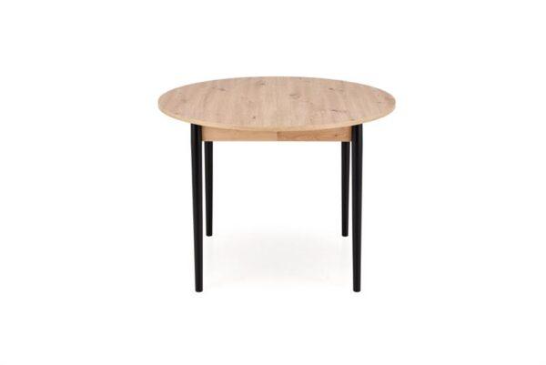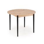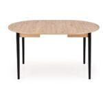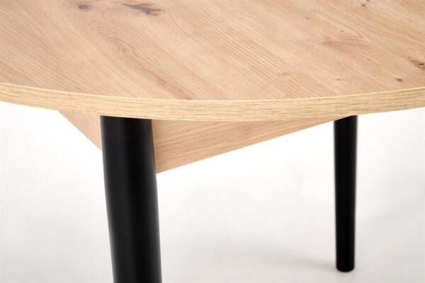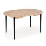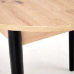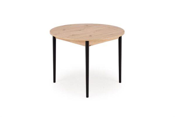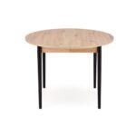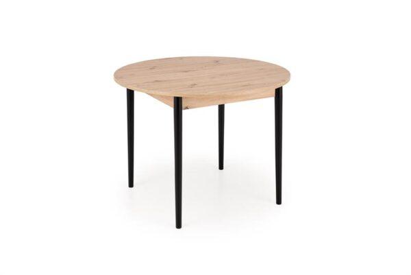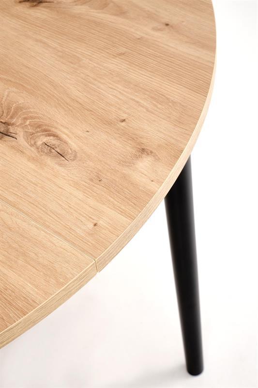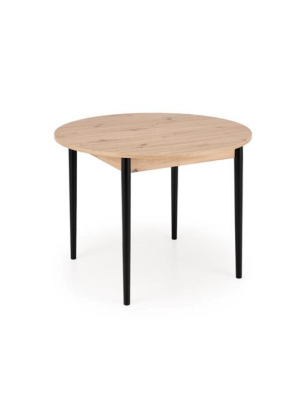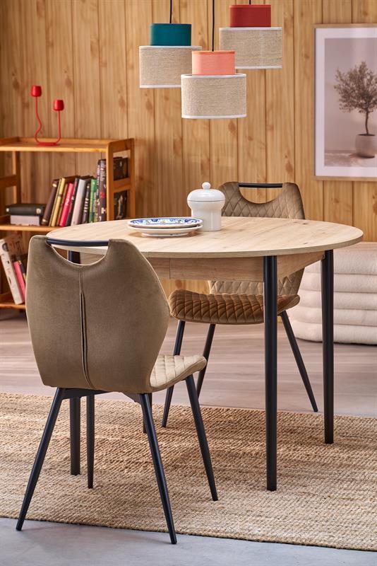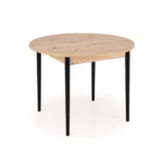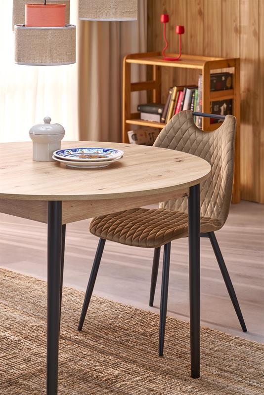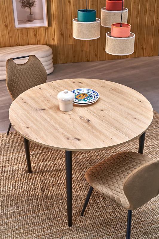Blagovaonski stol Karol elegantan je rasklopivi stol koji kombinira funkcionalnost s modernim dizajnom. Njegova gornja ploča izrađena je od laminirane ploče za namještaj u nijansi hrasta umjetničkog stila, što mu daje topao prirodan izgled koji podsjeća na klasično drvo. Noge stola, u kontrastnoj tamnocrnoj boji, naglašavaju moderni karakter komada. Pivot stol savršeno se uklapa i u manje prostore i u veće blagovaonice, zahvaljujući svojoj rasklopivoj značajki koja omogućuje podešavanje veličine stola kako bi se prilagodio broju gostiju.