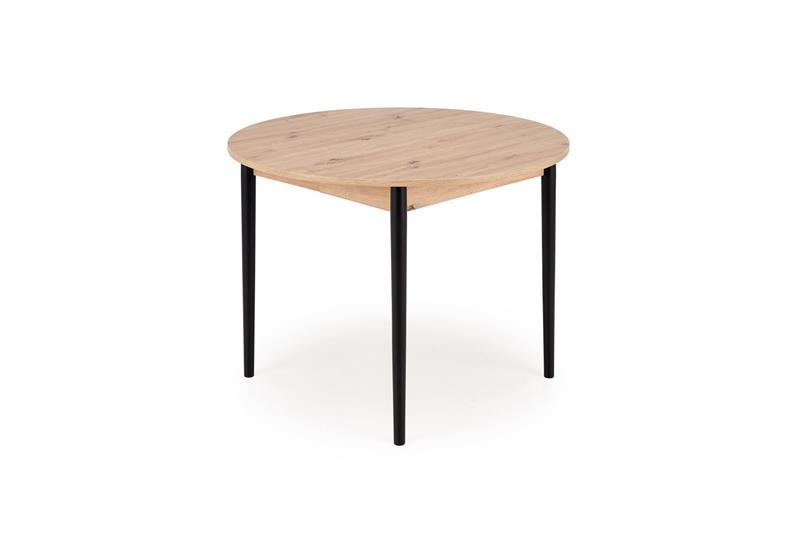 Blagovaonski stol Karol elegantan je rasklopivi stol koji kombinira funkcionalnost s modernim dizajnom. Njegova gornja ploča izrađena je od laminirane ploče za namještaj u nijansi hrasta umjetničkog stila, što mu daje topao prirodan izgled koji podsjeća na klasično drvo. Noge stola, u kontrastnoj tamnocrnoj boji, naglašavaju moderni karakter komada. Pivot stol savršeno se uklapa i u manje prostore i u veće blagovaonice, zahvaljujući svojoj rasklopivoj značajki koja omogućuje podešavanje veličine stola kako bi se prilagodio broju gostiju.
