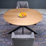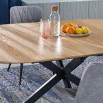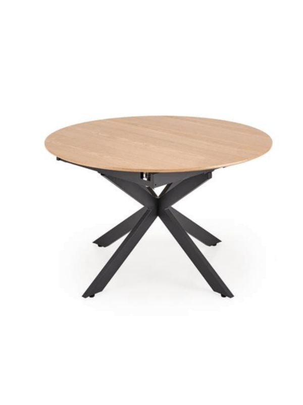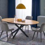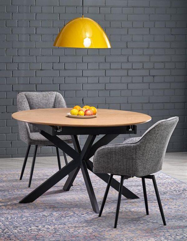 Prednosti blagovaonskog stola Klari ne leže samo u njegovom jedinstvenom dizajnu već i u materijalu od kojeg je izrađen. MDF ploča stola prekrivena prirodnim furnirom dodaje sofisticiranost i čini ga prikladnim za različite stilove interijera, od lofta do modernog. Okrugli oblik stola, u kombinaciji s mogućnošću proširenja u ovalni oblik, pruža vam veliku fleksibilnost.
