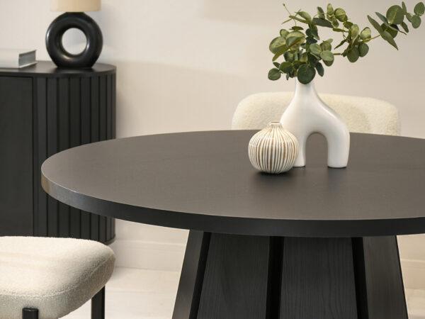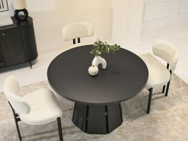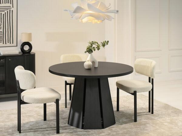 Blagovaonski stol Marketa savršeno se uklapa u moderne, minimalističke i industrijske interijere. Njegova mat crna završna obrada i jednostavan oblik s geometrijskom bazom daju mu karakter loft stila koji se lijepo stapa s drvom i metalom. Istovremeno, elegantan dizajn čini ga savršenim dodatkom svakom prostoru gdje su estetika i funkcionalnost ključne.