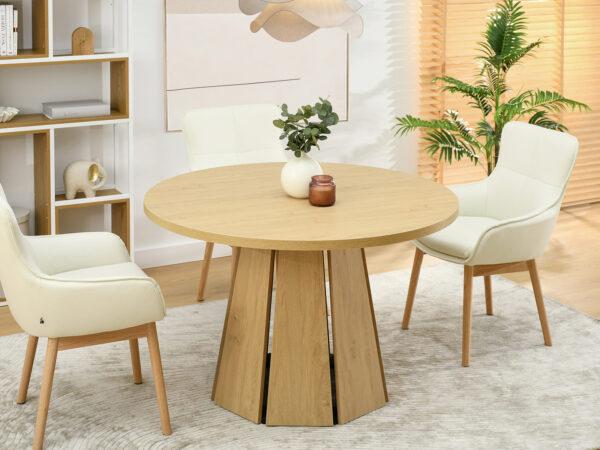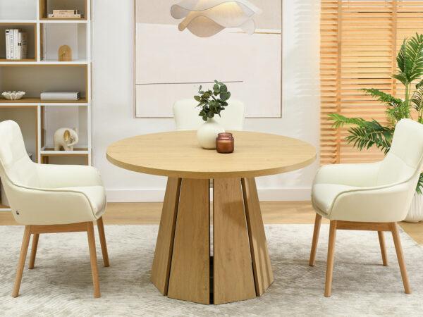 Blagovaonski stol Marketa savršeno se uklapa u moderne, minimalističke i industrijske interijere. Njegova završna obrada i jednostavan oblik s geometrijskom bazom daju mu karakter loft stila koji se lijepo stapa s drvom i metalom. Istovremeno, elegantan dizajn čini ga savršenim dodatkom svakom prostoru gdje su estetika i funkcionalnost ključne.