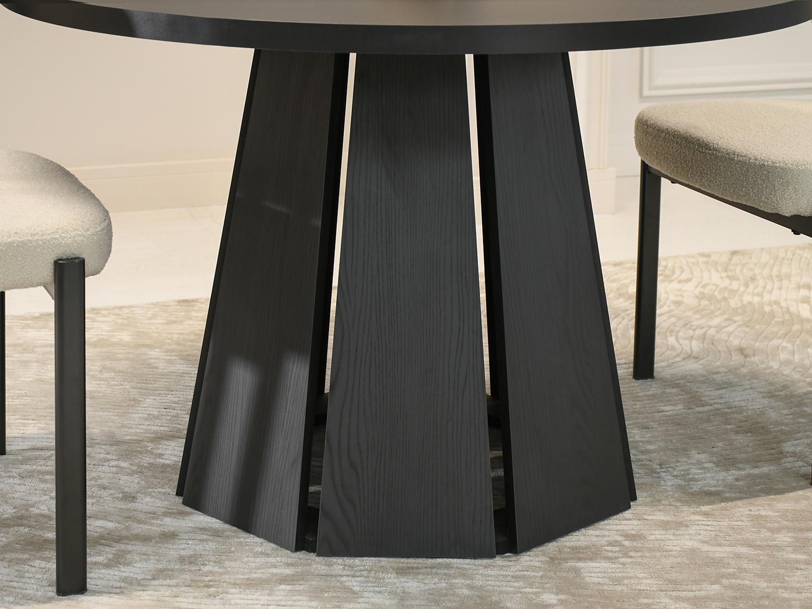 Blagovaonski stol Marketa savršeno se uklapa u moderne, minimalističke i industrijske interijere. Njegova mat crna završna obrada i jednostavan oblik s geometrijskom bazom daju mu karakter loft stila koji se lijepo stapa s drvom i metalom. Istovremeno, elegantan dizajn čini ga savršenim dodatkom svakom prostoru gdje su estetika i funkcionalnost ključne.
