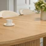 Blagovaonski stol Marlon je drveni stol u toplim bojama hrasta koji se skladno uklapa kako u klasične interijere tako i u modernije stilove. Također će se savršeno uklopiti u skandinavske interijere, ističući njihov ugodan i minimalistički karakter, savršeno se slažući sa svijetlim bojama i prirodnim materijalima. Ploča stola izrađena je od visokokvalitetne furnirane ploče u boji hrasta. Završna obrada ploče daje površini autentičnu strukturu drva, izlažući njegovu jedinstvenu zrnatost i toplu, prirodnu nijansu.