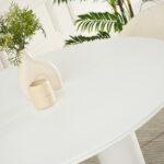 Blagovaonski stol Morvern kombinira bezvremensku estetiku s praktičnošću. Glatka mat površina izgleda moderno, a istovremeno se i lako čisti. Neutralna bijela boja ploče stola dodaje dašak lakoće i vizualnog sjaja svakom interijeru, čineći stol savršenim za razne aranžmane.