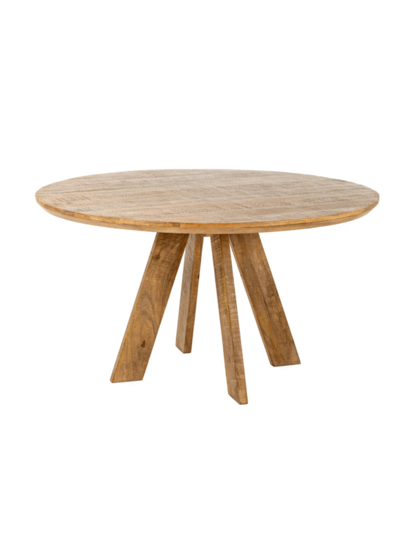 Blagovaonski stol Nori kombinira autentičnu izradu s modernim dizajnom. Izrađen od drva manga, impresionira svojim toplim, živahnim godovima i prirodnom završnom obradom, a četiri centralno postavljene nagnute noge osiguravaju stabilnost.