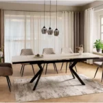 Najnovija akvizicija u kolekciji keramičkih stolova North! Stol dimenzija 160(240) x 90 s pločom od keramike osigurat će mjesto okupljanja Vašoj blagovaonici. Ploča je ovoga puta u mat bež boji, a već od prije Vam poznato metalno podnožje dat će mu dodatnu čvrstoću i stabilnost.