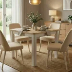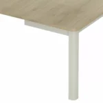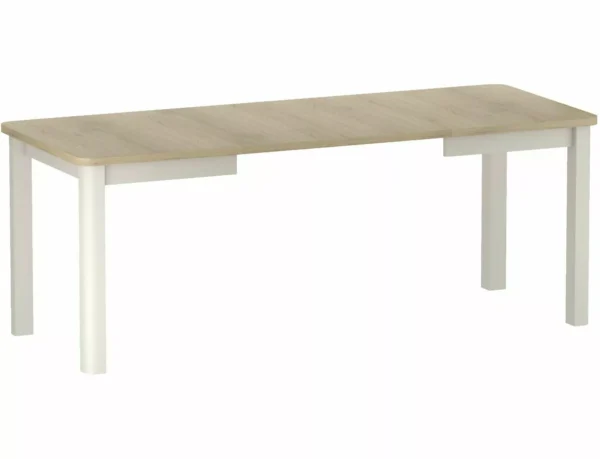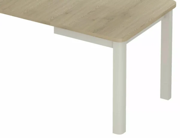 Stol na razvlačenje modernog dizajna u kombinaciji hrasta i mat bijele boje unosi eleganciju i toplinu u svaki prostor. Ploča je izrađena od laminirane ploče, dok je okvir od MDF-a, što osigurava stabilnost i jednostavno održavanje. Stol dolazi s dva umetka od 60 cm za proširenje, koji se pohranjuju odvojeno.