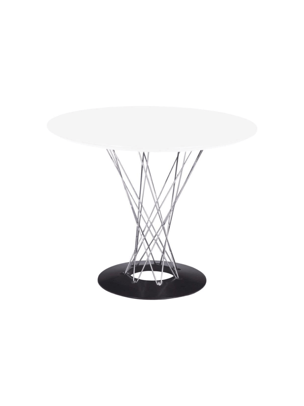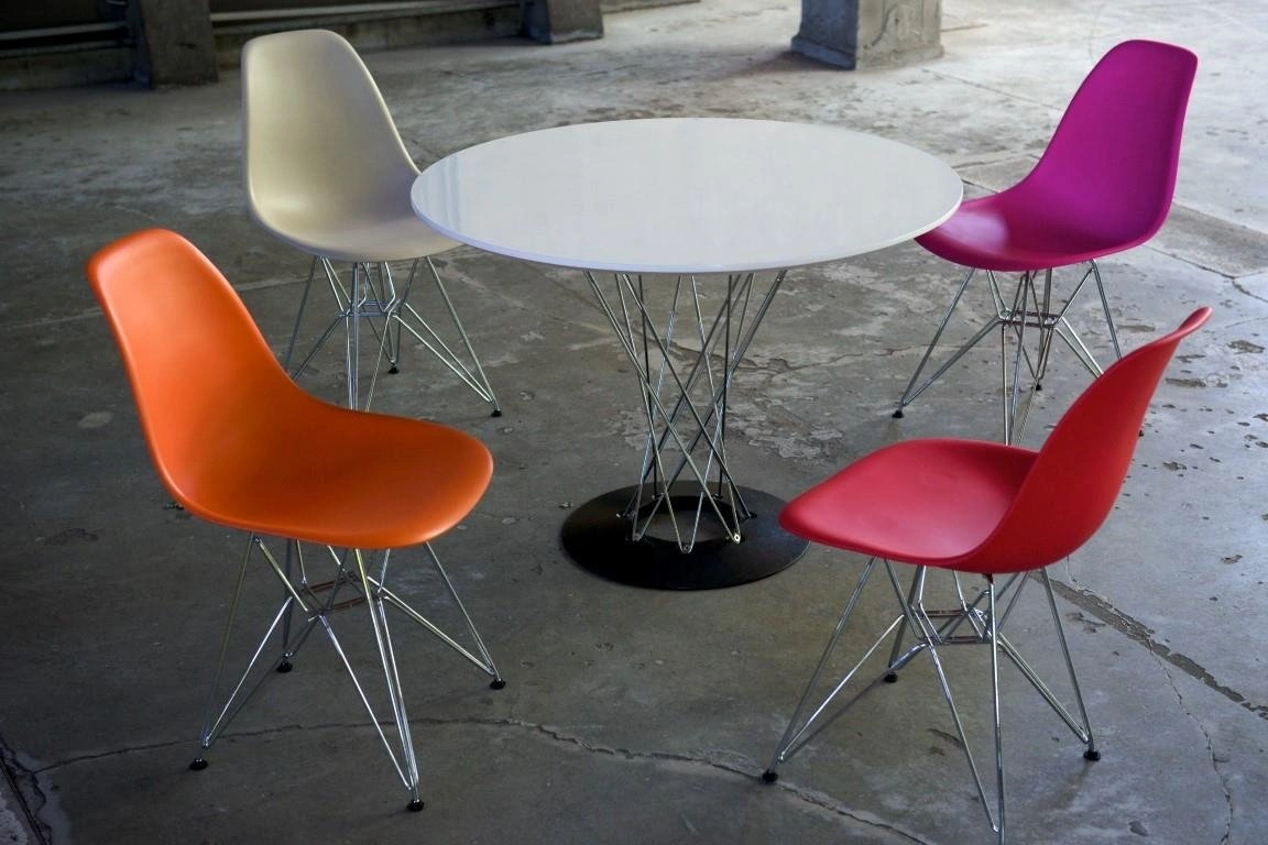 Prepoznatljivo postolje blagovaonskog stola Plexus izrađeno je od čelične žice s kromiranom završnom obradom.