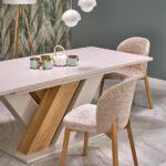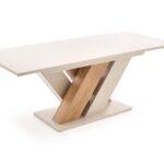 Blagovaonski stol Rando osvježit će vaš životni prostor svojom sklopivom strukturom koja se sastoji od savršenog spoja iverala u boji wotan hrasta i elegantne beige boje.