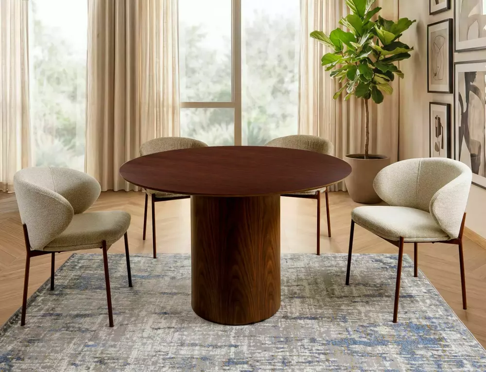 Stol izrađen od kvalitetnog MDF-a obloženog prirodnim furnirom u toploj boji oraha odlikuje se elegantnim i prirodnim izgledom.