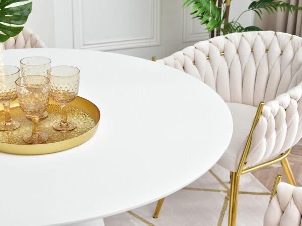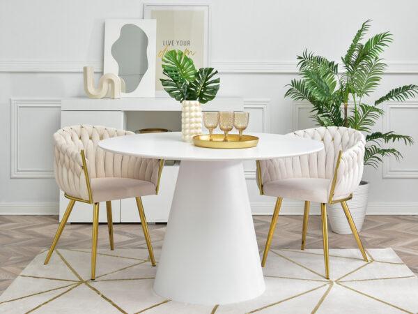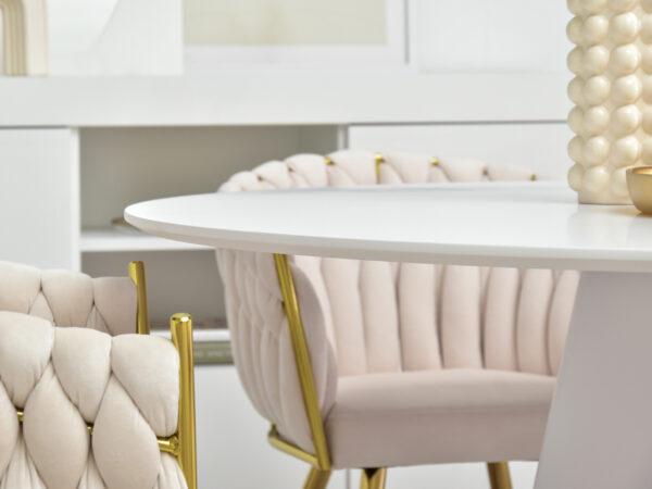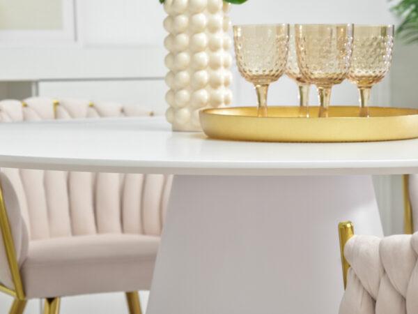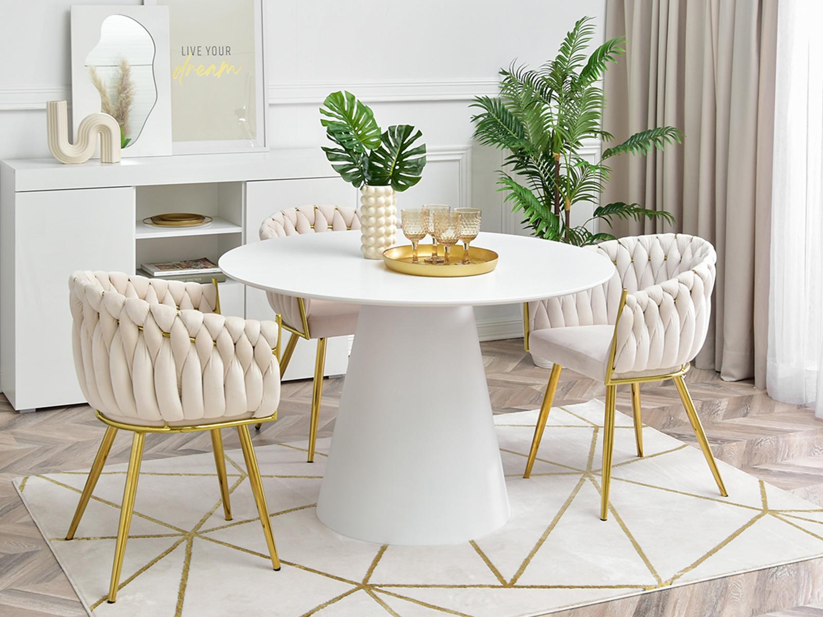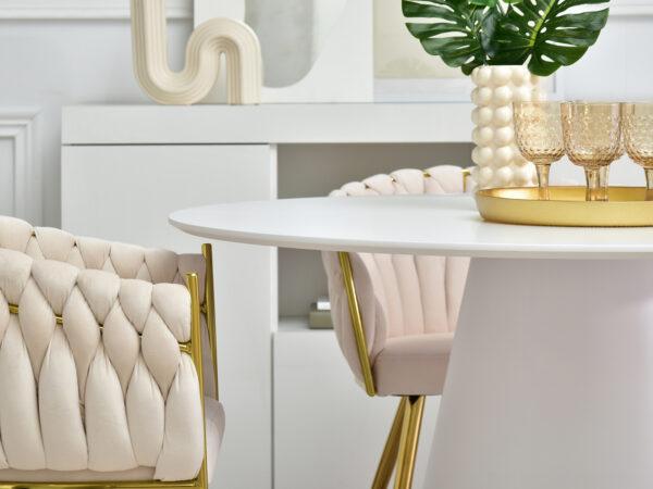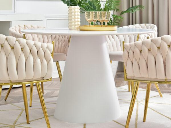 Izražajne crte blagovaonskog stola Sioux u kombinaciji sa svijetlom bojom površine stvaraju jedinstvenu kompoziciju koja će biti žarište pažnje u blagovaonici. Postolje u obliku stošca nije samo atraktivan vizualni naglasak, već osigurava stabilnost i čvrstoću strukture.