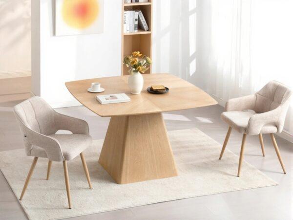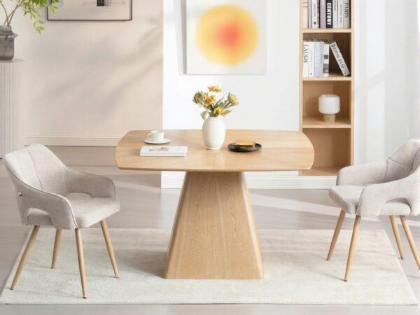 Blagovaonski stol Swain ističe se prije svega svojom ergonomskom središnjom bazom koja omogućuje udobno korištenje za četiri osobe. Njegov svestrani oblik omogućuje jednostavnu prilagodbu raznim stilovima interijera, a čvrsta konstrukcija jamči dugotrajnu stabilnost.