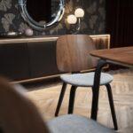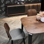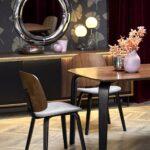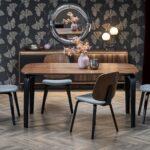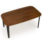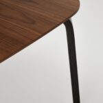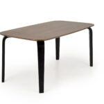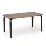 Blagovaonski stol Tucco ima ploču sa zaobljenim rubovima izrađenu od najkvalitetnije MDF ploče s prirodnim furnirom oraha kao i svijene crne nogice od punog drva kaučuka.