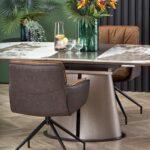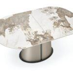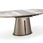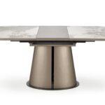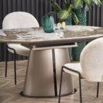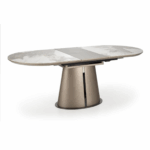 Blagovaonski stol Valpurga besprijekorno spaja stil i funkcionalnost. Ovaj svestrani produžni stol ima ploču izrađenu od keramike bež boje mramora, upotpunjenu lakiranim MDF-om i čvrstim nogama od čelika s praškastim premazom. Noge dolaze u sofisticiranoj cappuccino i crnoj završnoj obradi, dodajući dašak elegancije svakom blagovaonskom prostoru.