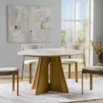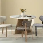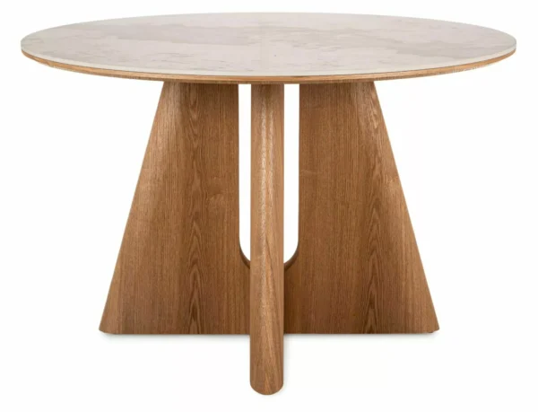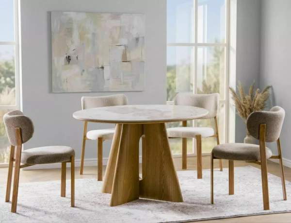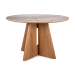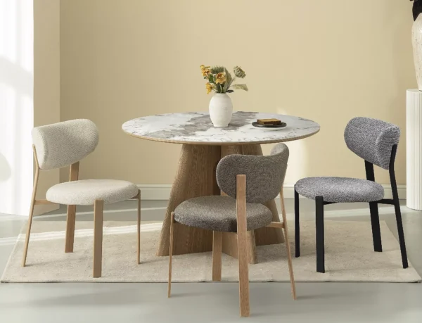 Blagovaonski stol Vancouver kombinira profinjenu estetiku s funkcionalnošću, stvarajući prostor za svakodnevna druženja. Okrugla ploča stola naglašava lakoću aranžmana i omogućuje prirodnu atmosferu bliskosti i opuštenog razgovora. MDF baza prekrivena prirodnim furnirom osigurava čvrstoću i kohezivan cjelokupni izgled.