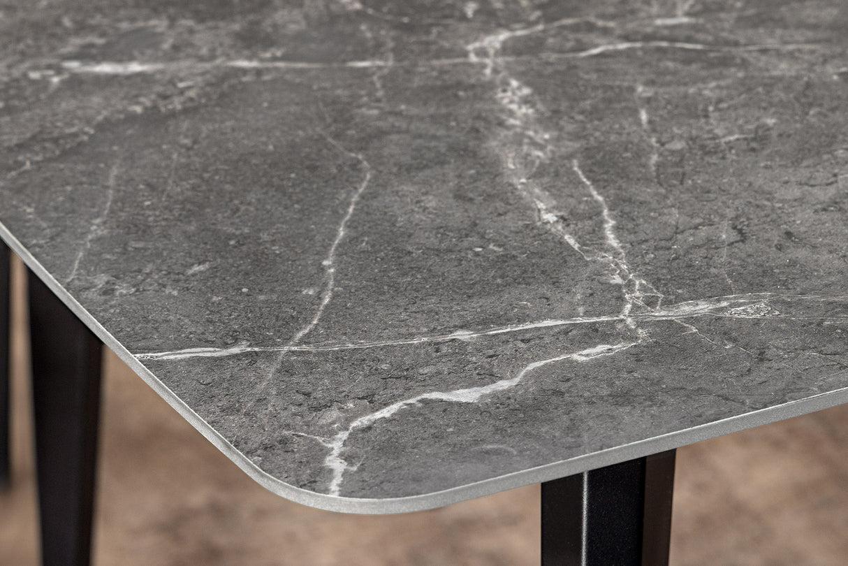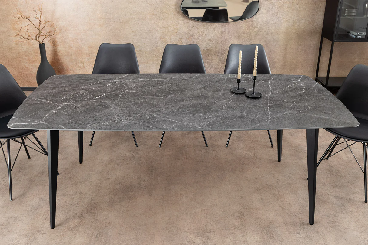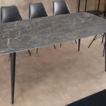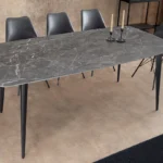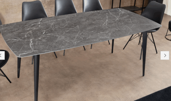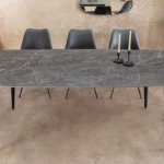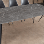 Unesite moderan i sofisticiran dodir u svoju blagovaonicu sa stolom Verlain. S dimenzijama od 160 × 90 cm, može primiti do 8 gostiju u ugodnom i profinjenom okruženju. Mat završna obrada keramičke ploče ističe duboke nijanse antracita, dok metalne noge osiguravaju savršenu stabilnost.