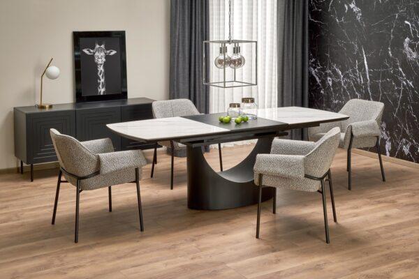 Stol Viano krasi keramička ploča koja je vrlo izdržljiv i jednostavan materijal za održavanje, dok čelična noga dodaje čvrstoću i stabilnost. Crna shema boja nesumnjivo će dodati elegantan dodir svakoj prostoriji, a jedinstveni oblik noge zasigurno će privući pažnju.