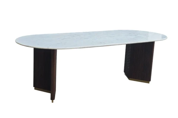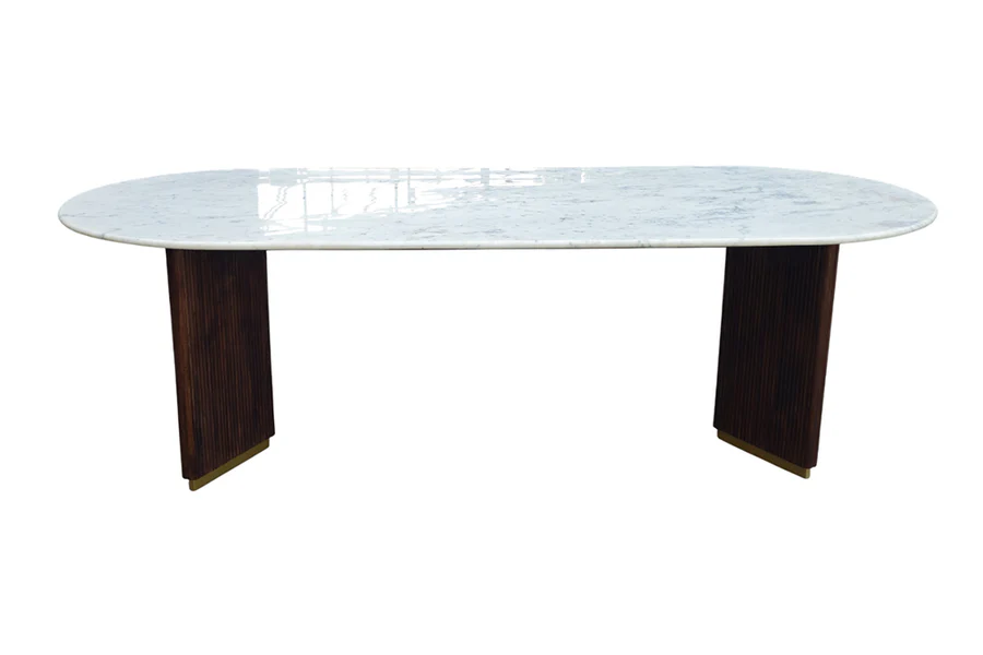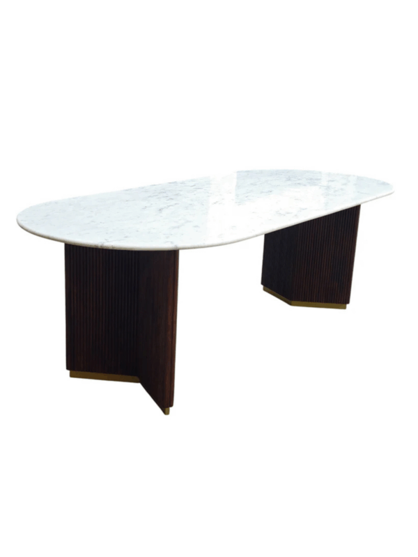 Blagovaonski stol Yeona spaja mramornu eleganciju i stil mangovog drva u obliku slova V, stvarajući uistinu istaknut središnji ukras. Savršen za sve, od večera do ležernih druženja, ovaj stol je luksuzna nadogradnja koju vaša blagovaonica zaslužuje.