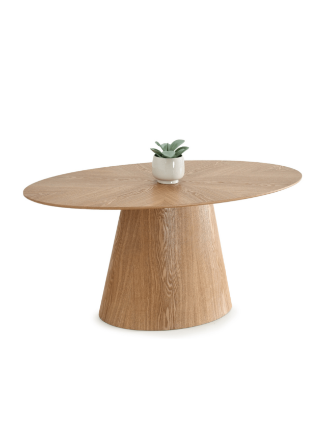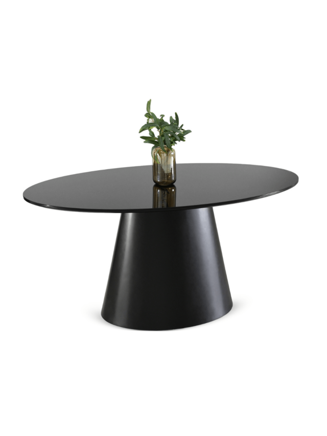 Blagovaonski stol Zafira ističe se ovalnim oblikom i elegantnom pločom u sjajnoj bijeloj boji. Stabilna baza u obliku stošca čini ga idealnim izborom za one koji cijene minimalistički stil i visoku kvalitetu izrade u uređenju blagovaone ili dnevnog boravka.