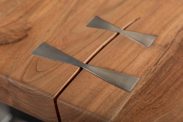 Ručno izrađeni stol od punog drveta bagrema sa izraženim detaljima u drvetu od nehrđajućeg čelika koji će se savršeno uklopiti u Vašu blagovaonicu.