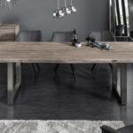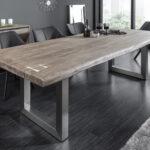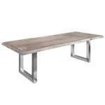 Ručno izrađeni stol od punog drveta sivog bagrema sa izraženim detaljima u drvetu od nehrđajućeg čelika koji će se savršeno uklopiti u Vašu blagovaonicu.