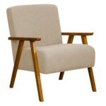 Udobna fotelja s postoljem od punog drveta koja će razigrati svaki kutak i pružiti Vam potreban komfor. Izbor boje materijala olakšava Vam njezinu prilagodbu ostatku prostora.