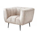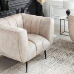 Fotelja Craig s ukrasnim prošivom na leđima i sjedalu dopunjuje svoj retro izgled, kombinirajući teksturirani baršun u boji šampanjca s crnim metalnim nogama.