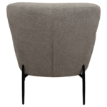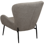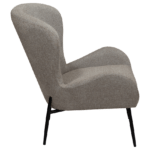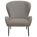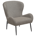 Ova fotelja zrači elegancijom s kraljevskim dojmom mekano oblikovanog sjedala izrađenog od boucle tkanine smeđe boje te vitkih metalnih nogu boje starinskog mesinga. Visina ove fotelje iznosi 85 cm.
