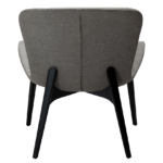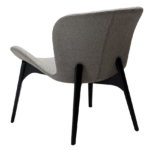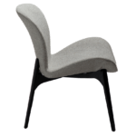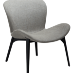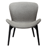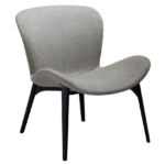 Ova lounge fotelja ističe se elegantnim detaljima. Tanko, zaobljeno sjedalo i naslon presvučeni su u smeđu boucle tkaninu. Postolje čine crne noge drva jasena s vidljivim godovima.