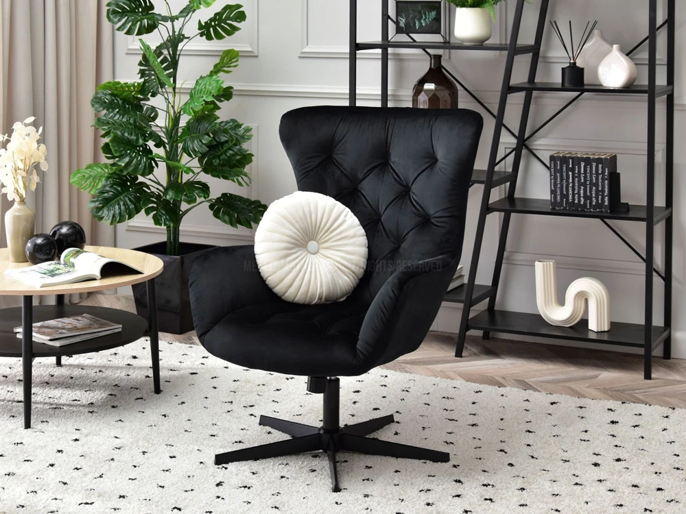 Ako cijenite klasičan dizajn interijera, crna minimalistička fotelja Roman bit će odgovarajuć izbor za vaš interijer. Mogućnost ljuljanja zahvaljujući posebnom mehanizmu oduševit će vas već pri prvom korištenju. Presvlake od velura kao završna obrada učinit će svaki provedeni trenutak opuštenim, a bezvremenska crna boja uvijek izgleda elegantno.