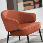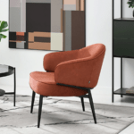 Fotelja Rouen praktičnim oblikom sjedala pruža udobnu potporu i jamči ugodan odmor. Čvrsti crni okvir daje fotelji moderan karakter, stvarajući skladnu kompoziciju s nježnom nijansom tkanine.