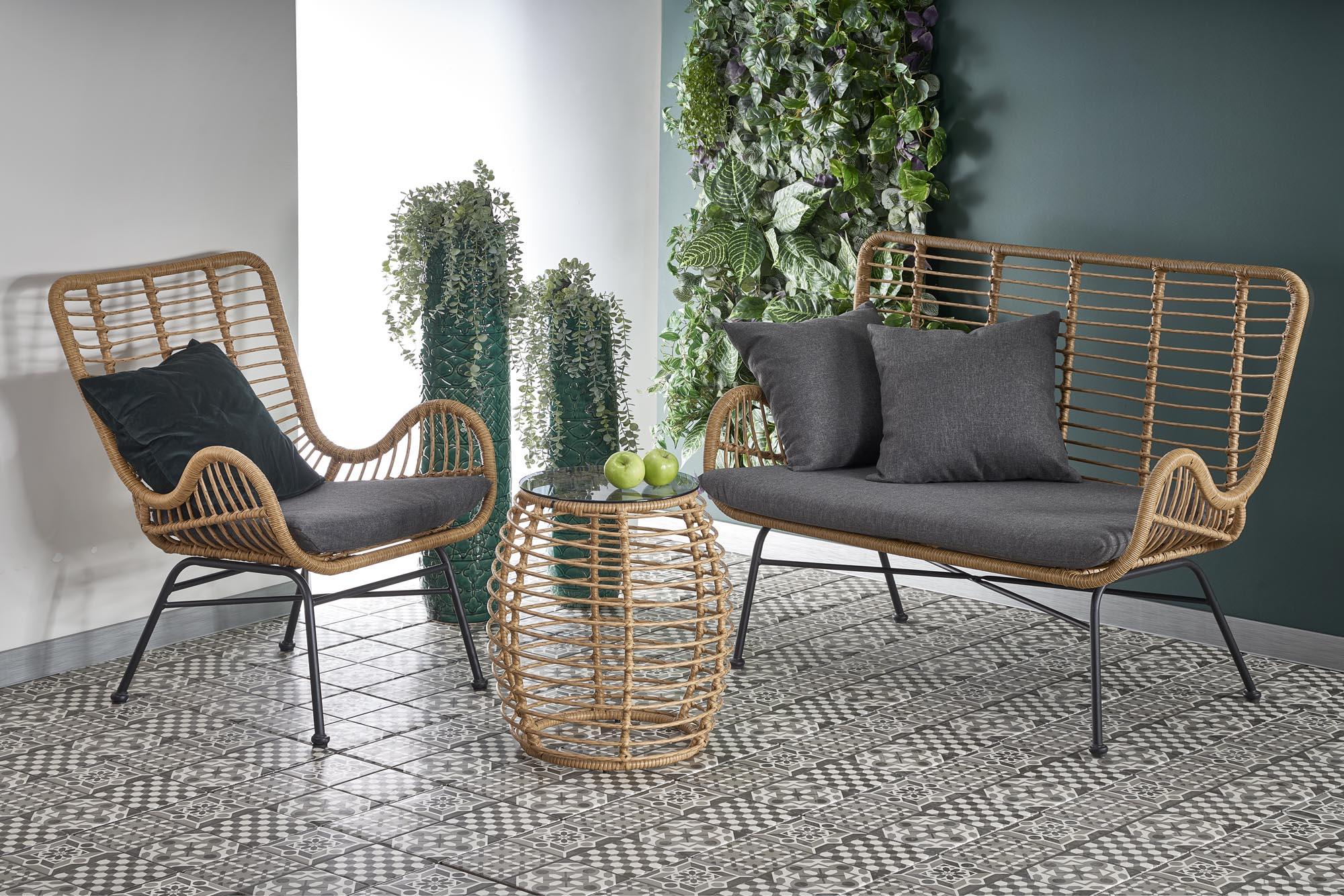 Udobna fotelja od ratana i dvosjed istog dizajna uljepšat će svaki exterijer, a kombinacija sa stolićem savršeno se može uklopiti i u moderni interijer.