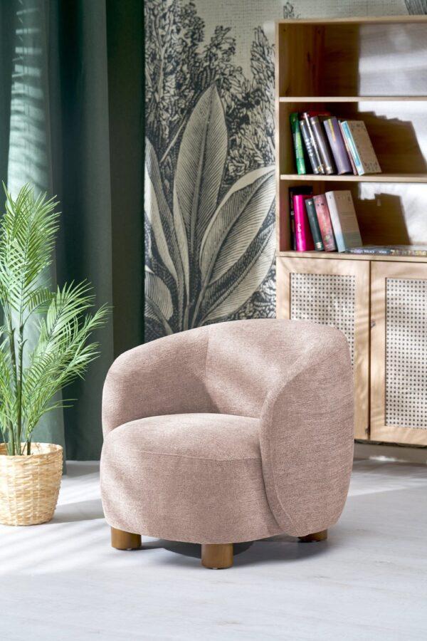 Moderna fotelja suvremenog dizajna odlikuje se zaobljenim linijama i bogato podstavljenim sjedalom koje pruža visoku razinu udobnosti. Presvučena je kvalitetnom tkaninom koja doprinosi ugodnom i elegantnom izgledu. Idealan izbor za dnevni boravak ili prostor za opuštanje.