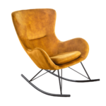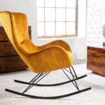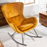 Fotelja za ljuljanje baršunastog materijala senf boje učinit će svaki dom udobnim i razigranim.