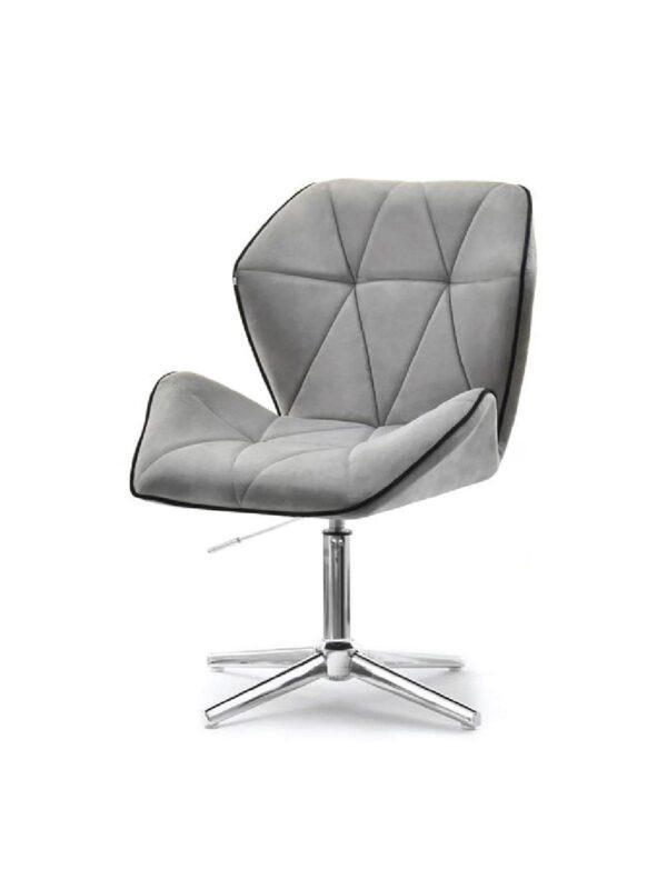 Fotelja elegantnog dizajna u kombinaciji baršuna i čelika s regulacijom visine i mogučnošću rotiranja.