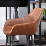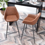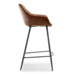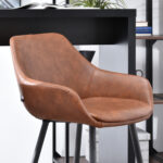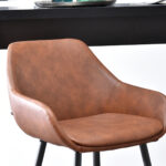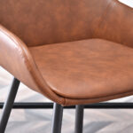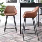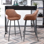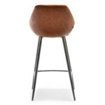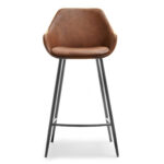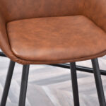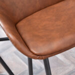 Barska stolica izrađena od smeđe eko kože u vintage stilu s metalnim nogama crne boje. Prekrasni detalji i karakteristični šavovi na njoj uljepšati će svaki interijer.