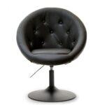 Fotelja elegantnog dizajna u kombinaciji čelika i baršuna s regulacijom visine i mogućnošću rotiranja.