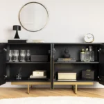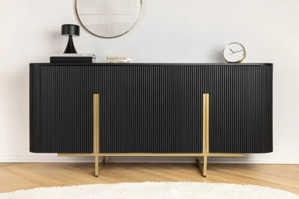 Spojite retro šarm i moderni glamur s komodom Armas, elegantnim modelom koji je jednako praktičan koliko i privlačan. Bogata završna obrada od mango drva i odvažni zlatni detalji stvaraju savršenu mješavinu vintage stila i suvremenog dodira za svaku prostoriju.
