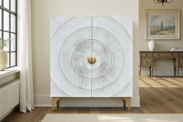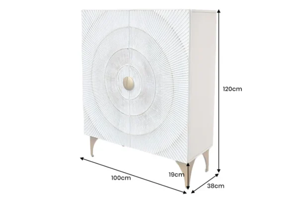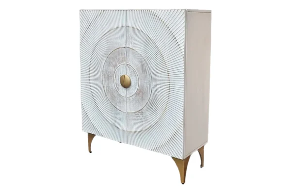 Komoda Cora spaja profinjenu eleganciju sa svakodnevnom funkcionalnošću. Puno drvo manga i zlatni detalji čine ovaj model savršenim za one koji žele estetski dodatak bez da gube na praktičnosti.