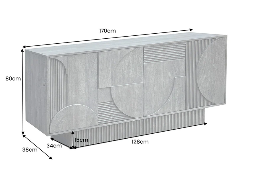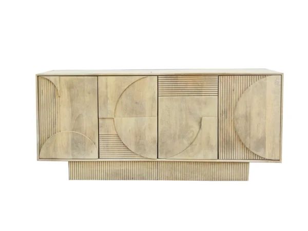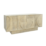 Komoda Iria svojim je jedinstvenim teksturama i toplim tonovima drva manga savršena mješavina funkcionalnosti i stila za svaku prostoriju.