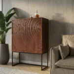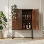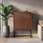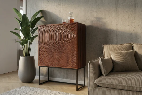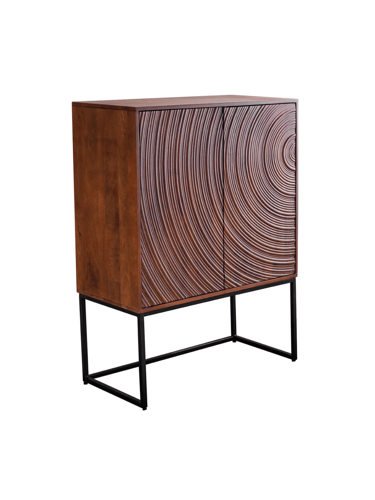 Komoda Isak privlači pažnju koncentričnim kružnicama na vratima. Duboke reljefne strukture nalikuju nježnim valovima izrađenim od visokokvalitetnog lakiranog drva manga.