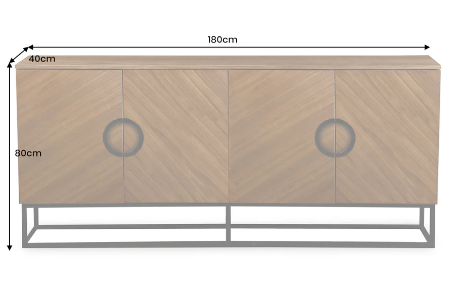 Komoda Keon je stvorena za ostavljanje utiska. S bogatim furnirom oraha i odvažnim crnim metalom, savršena je kombinacija stila i funkcionalnosti.