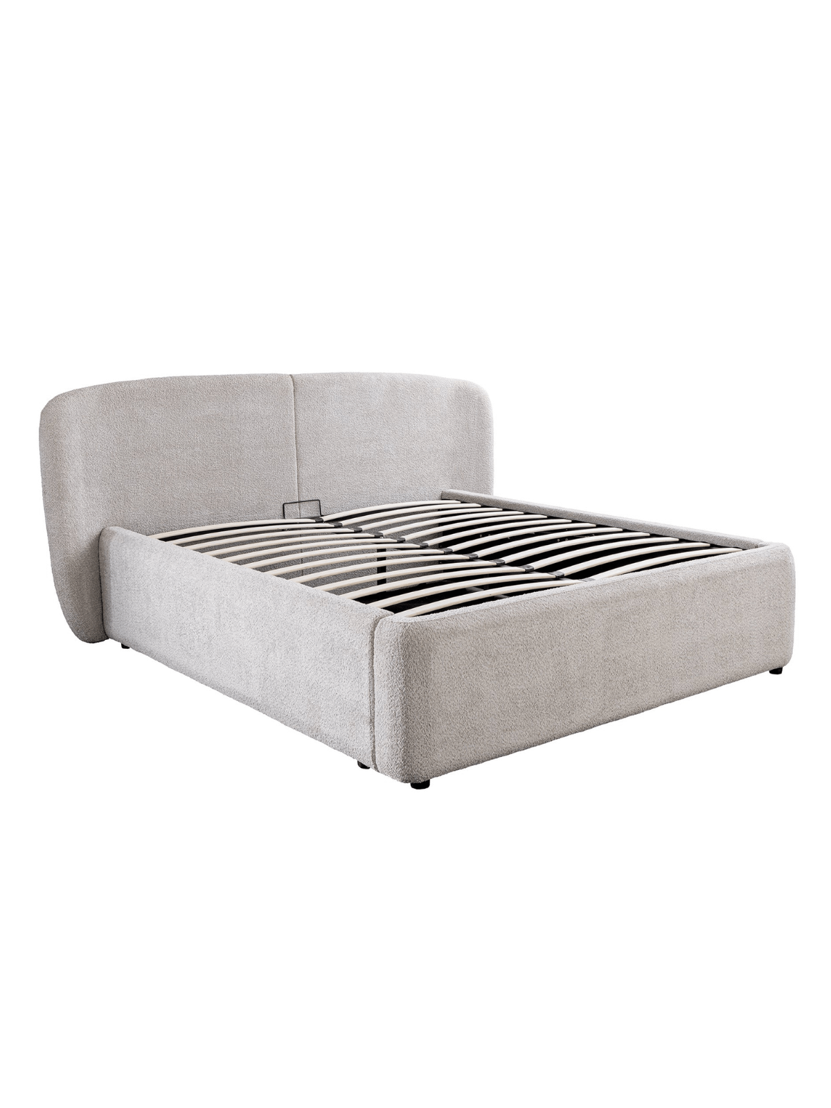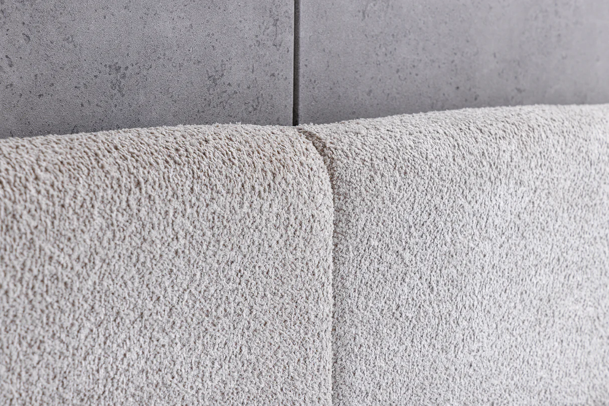 Spavajte sa stilom uz Deco krevet. Mekana bouclé završna obrada i elegantan dizajn čine ga istaknutim modelom koji kombinira udobnost sa svakodnevnom praktičnošću.